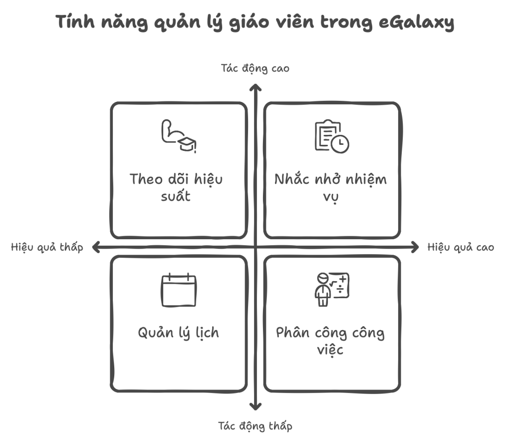 - Theo dõi hiệu suất và tiến độ giảng dạy của giáo viên, giúp ban quản lý đánh giá chất lượng giảng dạy và phân công công việc một cách hợp lý.